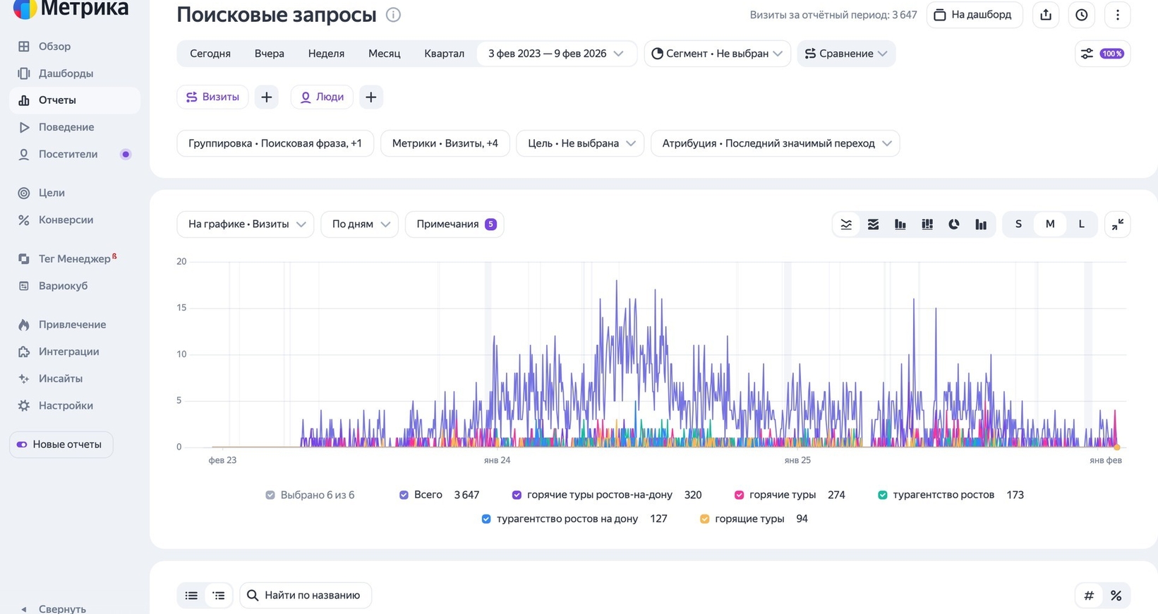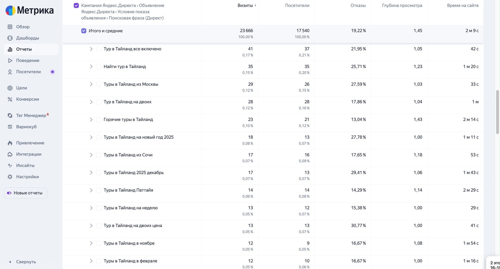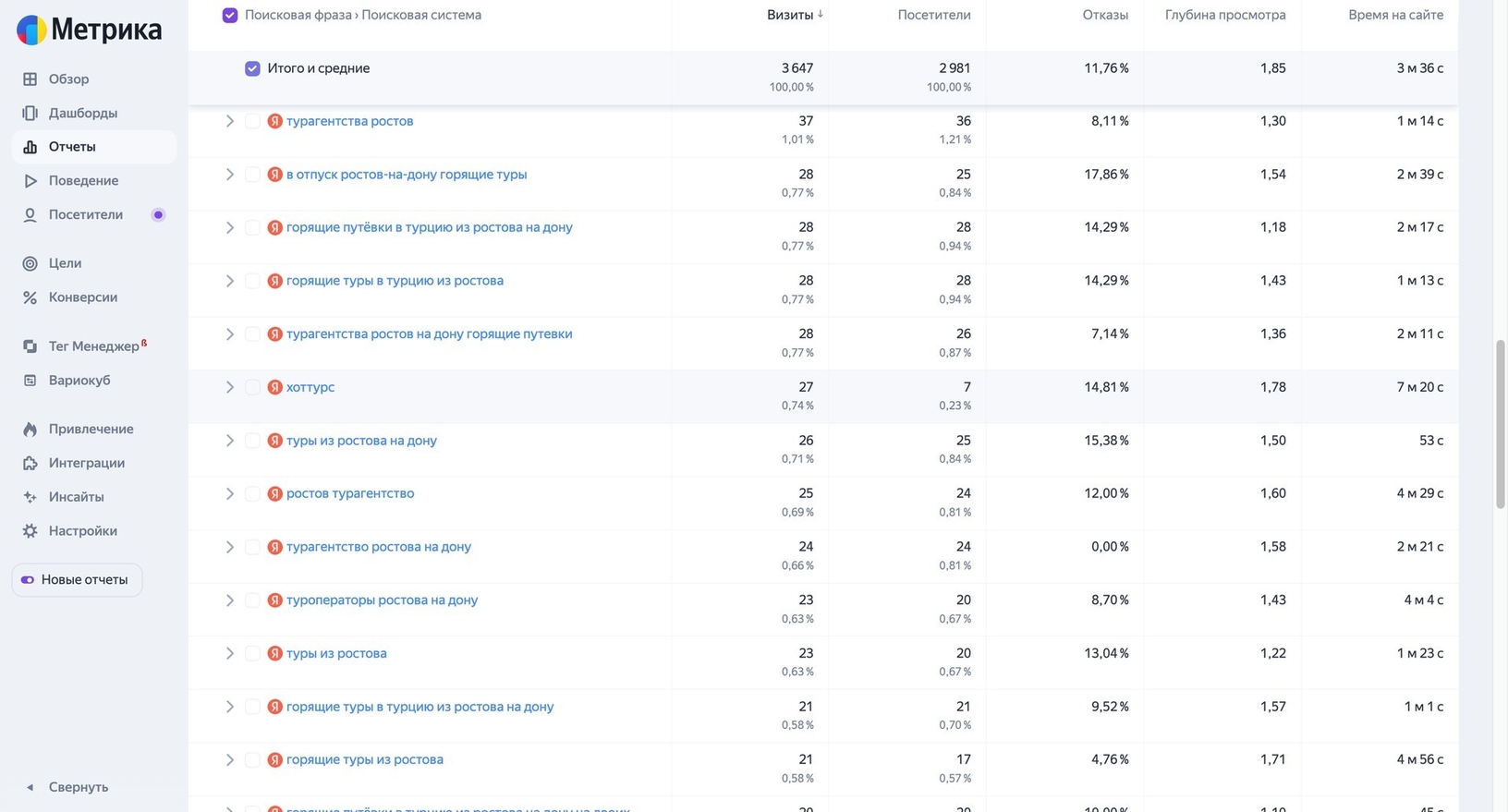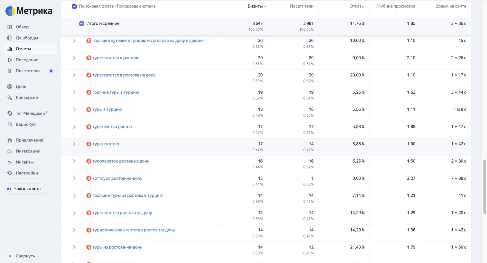 По проекту ведется глубокая аналитика, основанная на данных Яндекс Метрики.